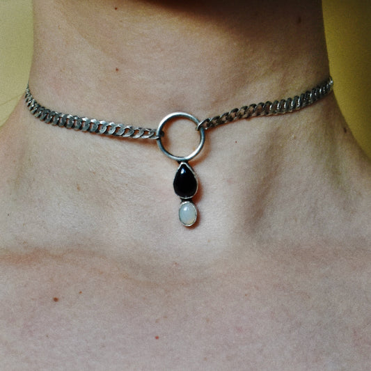 opposites attract necklace (opal & onyx)
